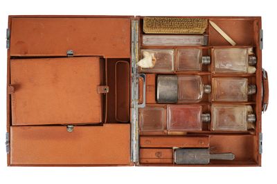 NECESSAIRE DE VOYAGE en argent, poinçon Minerve, verre taill…