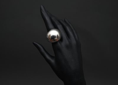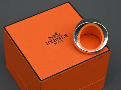 Hermès - Bague Quark en argent et résine orange.