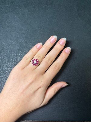 BAGUE de forme fleur en or gris 750 °/°° centrée d'un pavage…