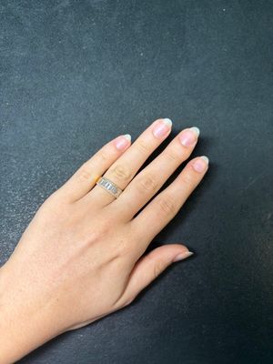 BAGUE en or jaune 750 °/°° ornée d'une ligne de diamants tai…