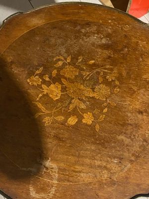 Gueridon 1900 style Louis XV, plateau marqueté de fleurs, li…