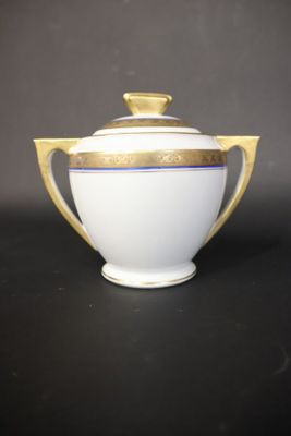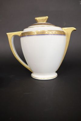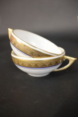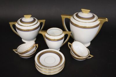 Partie de service à thé en porcelaine blanche à liseré doré …