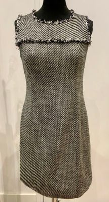 KARL LAGERFELD. Robe sans manche en tweed bicolore noir blan…
