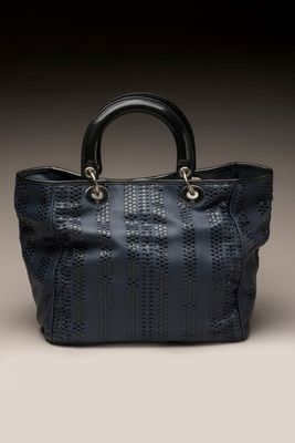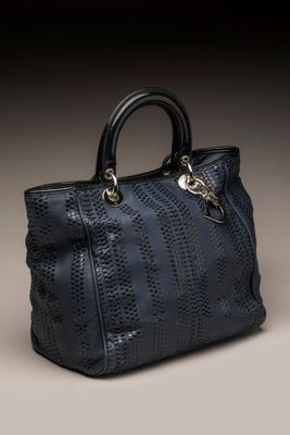 DIOR - SAC "Soft Lady" en cuir lisse et tressé bleu, double …