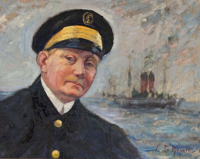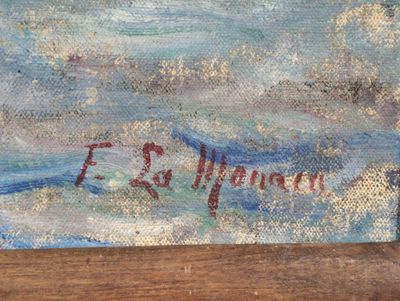 F. LA MONACA (XXème) Portrait d'un commandant devant son car…