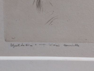 Pointe sèche signée et … Ce lot appartient à la catégorie Objets d'art & Curiosités. Son estimation se situe entre 100 et 150 €. Présenté par COUTON JAMAULT HIRN à Nantes. 3 photos disponibles.