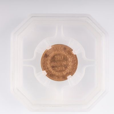 Ce lot appartient à la catégorie Numismatique. Son estimation se situe entre 800 et 850 €. La mise à prix était de 800 €. Présenté par DUPONT & Associés - Bretagne - Paris à Saint-Martin-Des-Champs. 3 photos disponibles.
