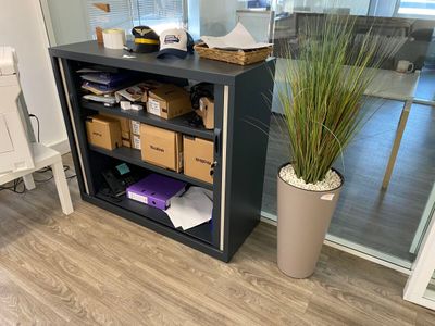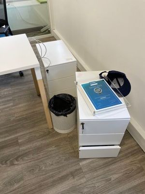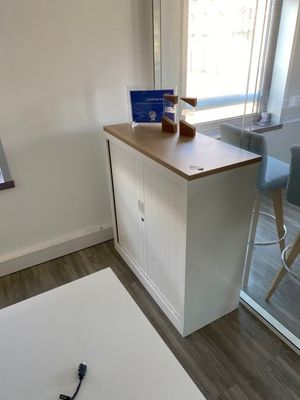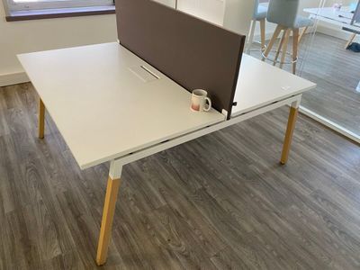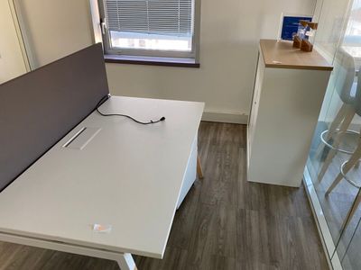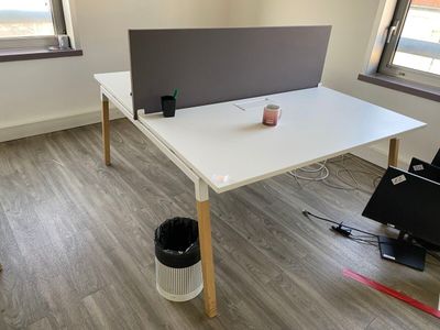 - 3 tables de travail en stratifié blanc dont 1 avec retour …