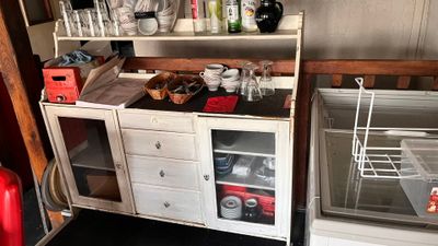 Buffet en bois peint blanc. Joint un buffet à portes vitrées…