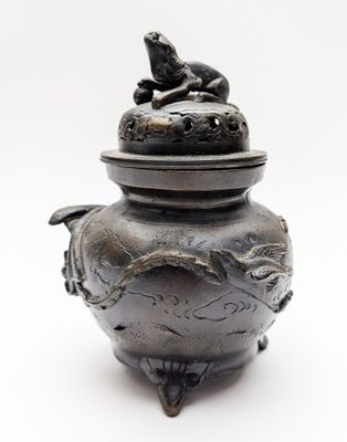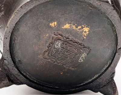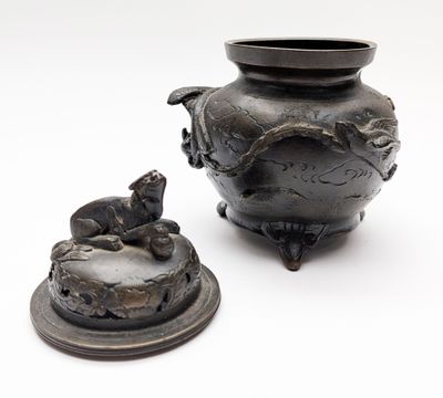CHINE, Début XXe siècle. BRÛLE-PARFUM tripode en bronze pati…