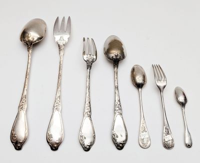 REUNION de 7 couverts en métal argenté divers modèles, Maîtr…