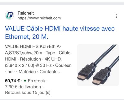 Câble 20 mètres - HDMI + ETHERNET