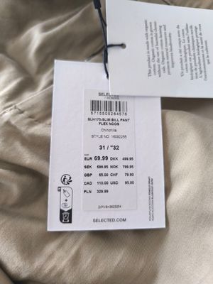 SELECTED HOMME - Taille W31/L32 Pantalon "Bill" slim beige -…