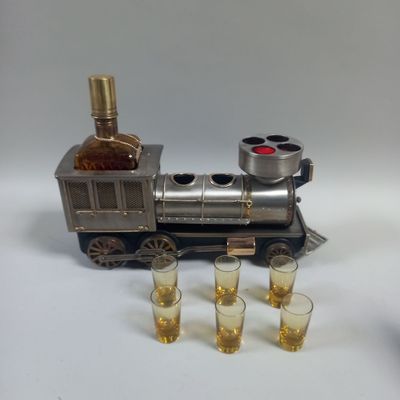 LOCOMOTIVE MUSICALE formant bar à Gin avec une carafe et 6 v…