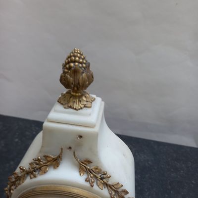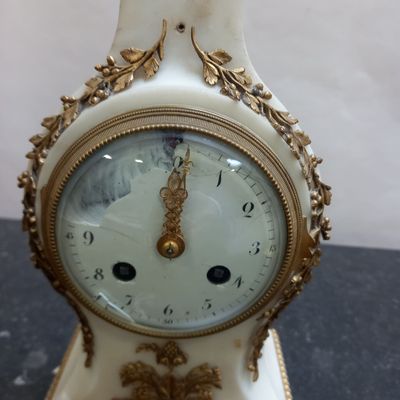 PENDULE borne en marbre blanc et bronze doré.
