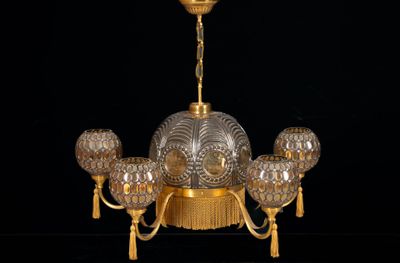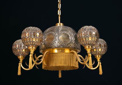 Lustre à cinq six lumières en verre et laiton. Style Art Déc…
