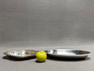 Deux petits plats en métal argenté.