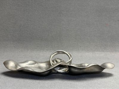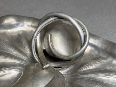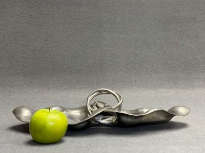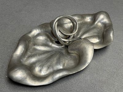 Plat à décor de feuilles en étain.