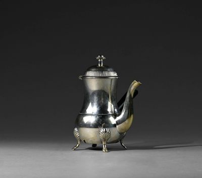Petite verseuse égoïste en métal argenté, manche en bois noi…