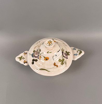 Bouillon couvert en faïence, décor de fleurs des champs.