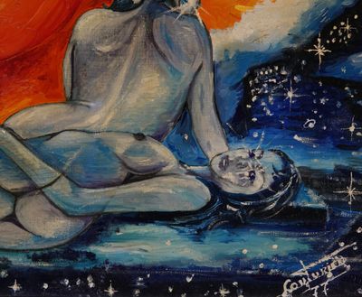 COUTURIER Les deux amies au bord de la plage au crépuscule, …