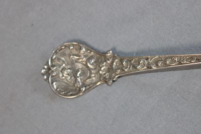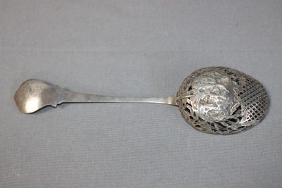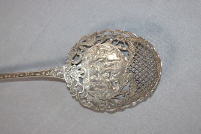 Grande cuillère en argent repercé, décor ciselé d'une scène …