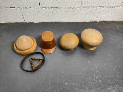 Lot composé de quatre formes de chapeaux et un compas de cha…
