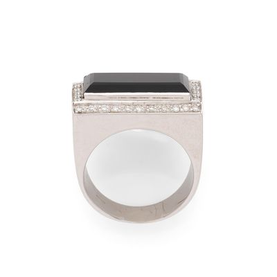 BAGUE retenant un rectangle d'onyx dans un entourage de diam…