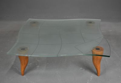 TABLE de SALON Ligne Roset plateau en verre signée Cailleres…