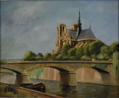 E. COSTES (XXe siècle) - Vue de Notre Dame de Paris