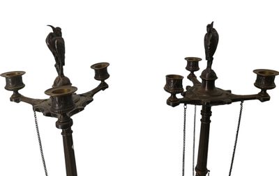 Antoine Louis BARYE (1795 - 1865) d'après, Paire de candélab…