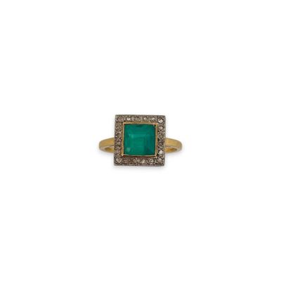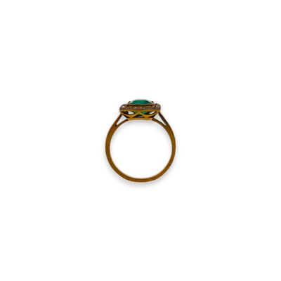 Bague en or 18K (750), ornée d'une pâte de verre verte entou…