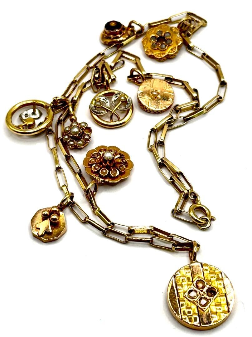 Ce lot appartient à la catégorie Bijoux & Pierres Précieuses. Son estimation se situe entre 1 200 et 1 600 €. Présenté par ENCHERES DE ROUEN à Caudebec-lès-Elbeuf. 5 photos disponibles.