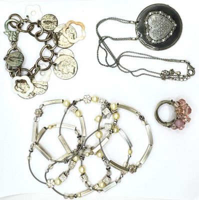 Lot de bijoux fantaisie en métal argenté - Comportant une ba…