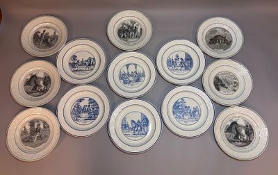 76. Réunion de 13 assiettes en faïence fine de Choisy, début…