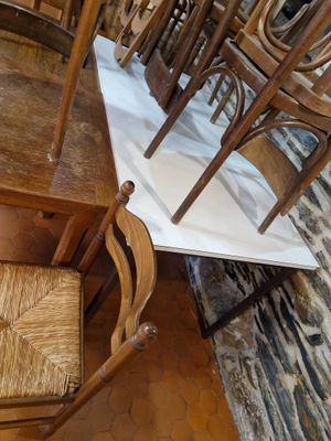Table haute ovale en métal et PVC et une carrée. On y joint …