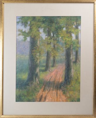 Charles POUPAERT (1874-1935), "Chemin arboré, pastel signé, …