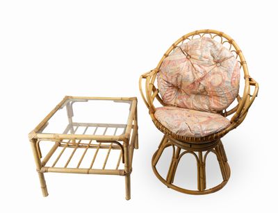 Salon de jardin en rotin laqué et coussin de tissus imprimé …