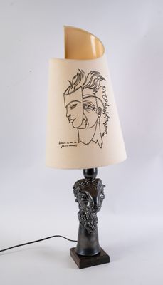 Jean MARAIS (1913-1998), lampe de salon visage, grès lustré …