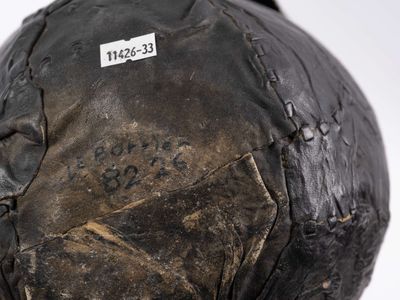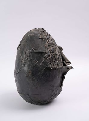 LE BORRIER (XX), Œuf, bois et cuir, H : 30 cm