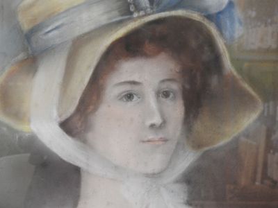 École FRANCAISE - XXeme Portrait de femme au chapeau.