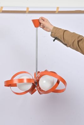 Années 70, suspension à trois globes en verre blanc