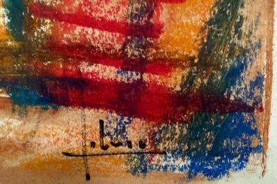 L TURC - Vue d'une kasbah Technique mixte crayon gras et aqu…