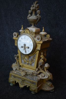 Pendule en régule doré à décor de caryatides, guirlandes et …