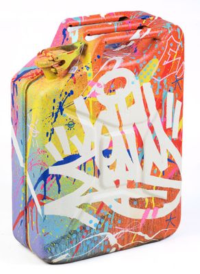 ZENOY (1974-). Bidon peint, signé.
