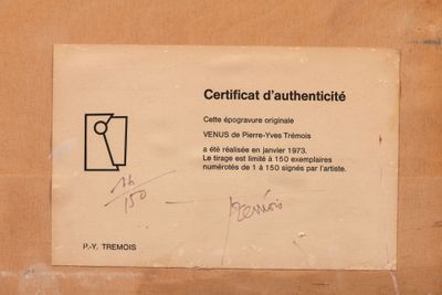 Pierre-Yves TREMOIS (1921-2020) "Vénus, 1973" épogravure sur…