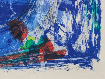Bernard LORJOU (1908-1986) Bouquet sur fond jaune Lithograph…
