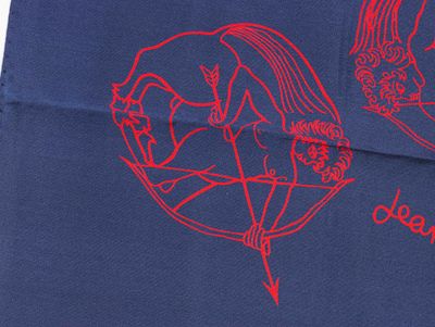 Jean MARAIS (1913-1998) Sagittaire rouge fond bleu Foulard e…