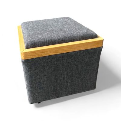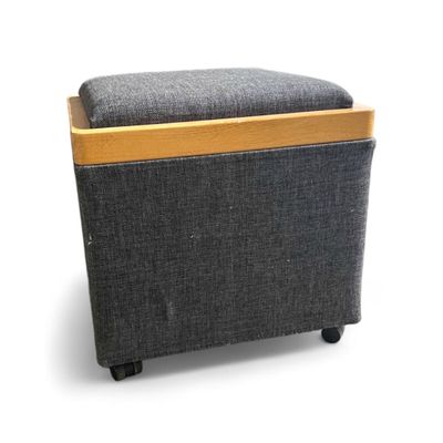 1 POUF COFFRE 50x50x50 cm, revêtement tissé gris
