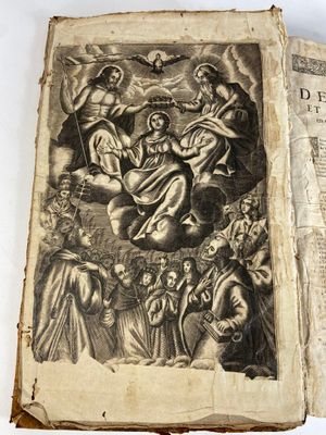 Lot de 2 livres : - Livre Table des Saints 1657 (usures) - L…